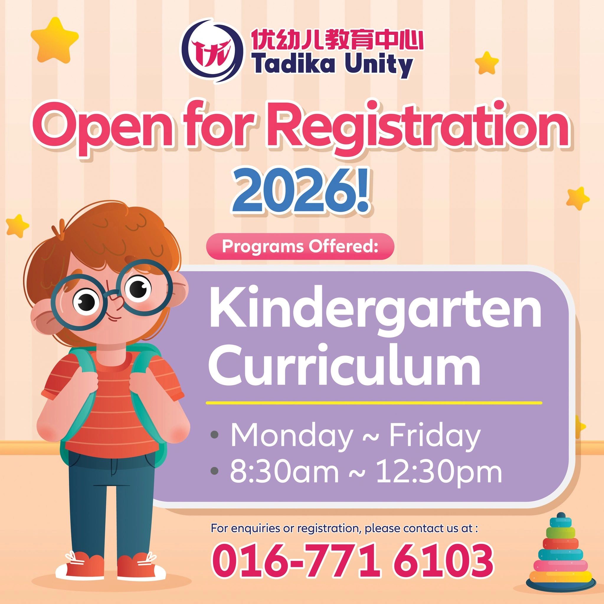 Tadika Unity is more than just a starting point for knowledge; it is a cradle where children learn to interact with others, understand themselves, and develop a love for life. We warmly invite you and your child to join our warm Tadika Unity family. Let us work hand-in-hand to lay the strongest foundation for your child's brilliant future.